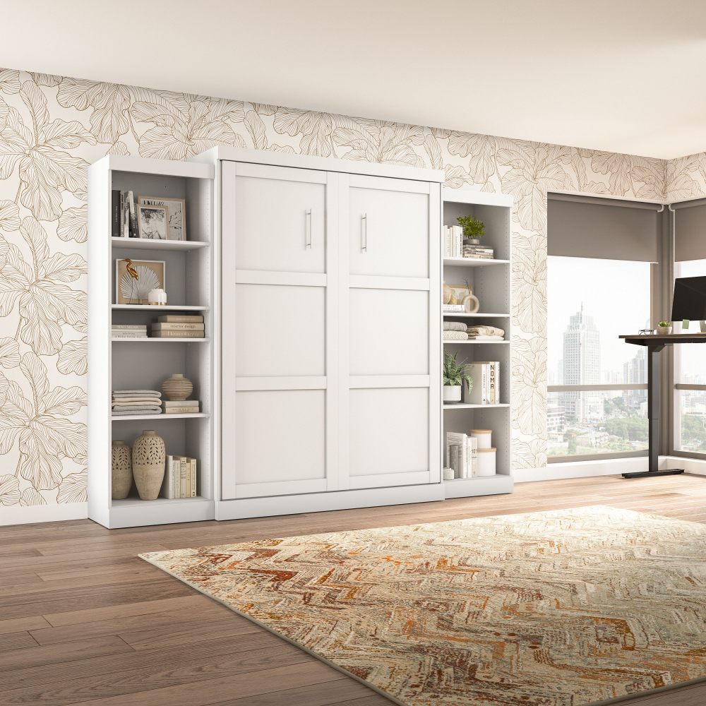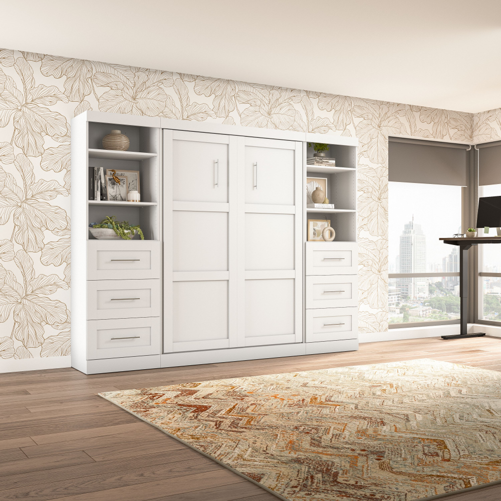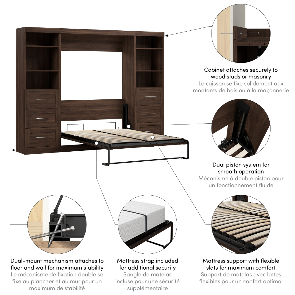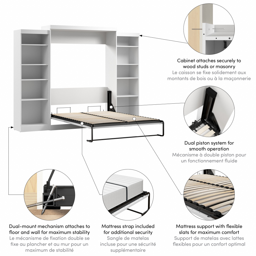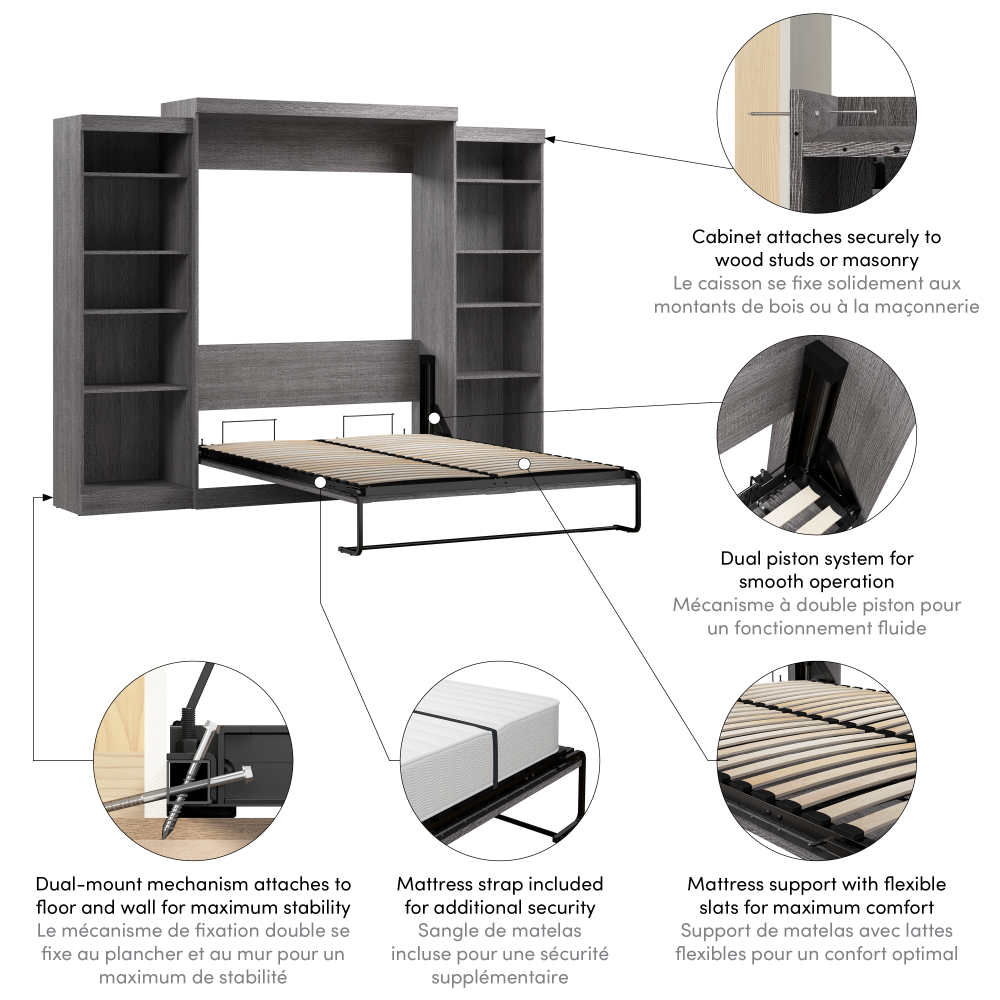 - Dual-mount wall bed mechanism attaches to floor and wall for ease of assembly and maximum stability and durability