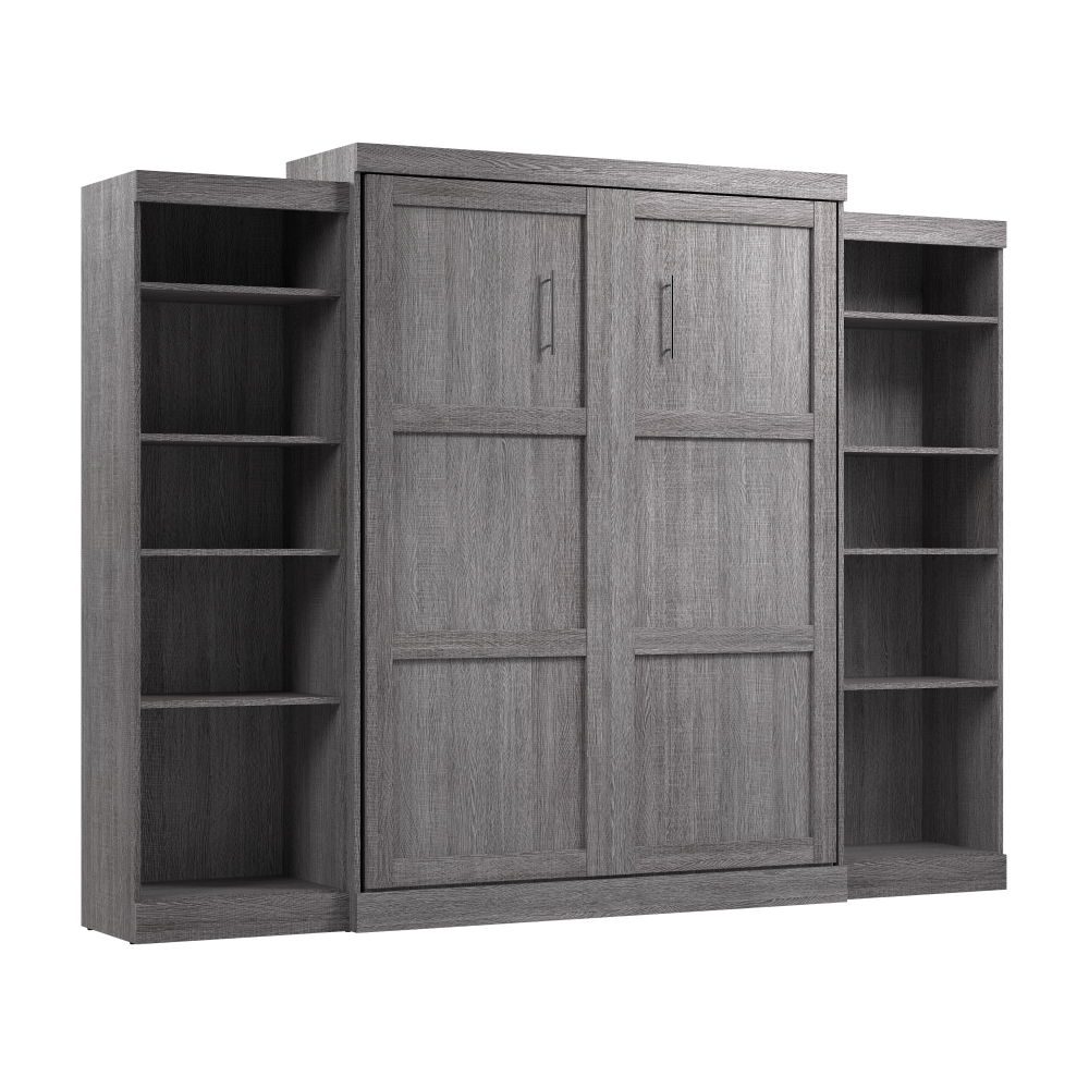 Bestar Murphy Beds are designed to be compatible with most standard innerspring or memory foam mattresses that are 8-12 inches thick, weighing 60-90 lbs, and measuring 60x80 inches (Queen size). For Full size Murphy Beds, mattresses are typically 8-10 inches thick, 60-90lbs and 54 x 75 inches. This ensures proper operation of the bed mechanism and optimal comfort. Please note that the mattress must not contain a box spring, as this will not fit properly in the cabinet. -