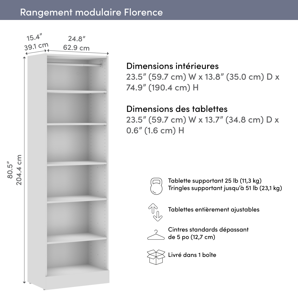 - This Set Includes: 25W x 16D Reach-In or Walk-In Closet System Tower with Shelves and 4 Drawers, Shaker Style