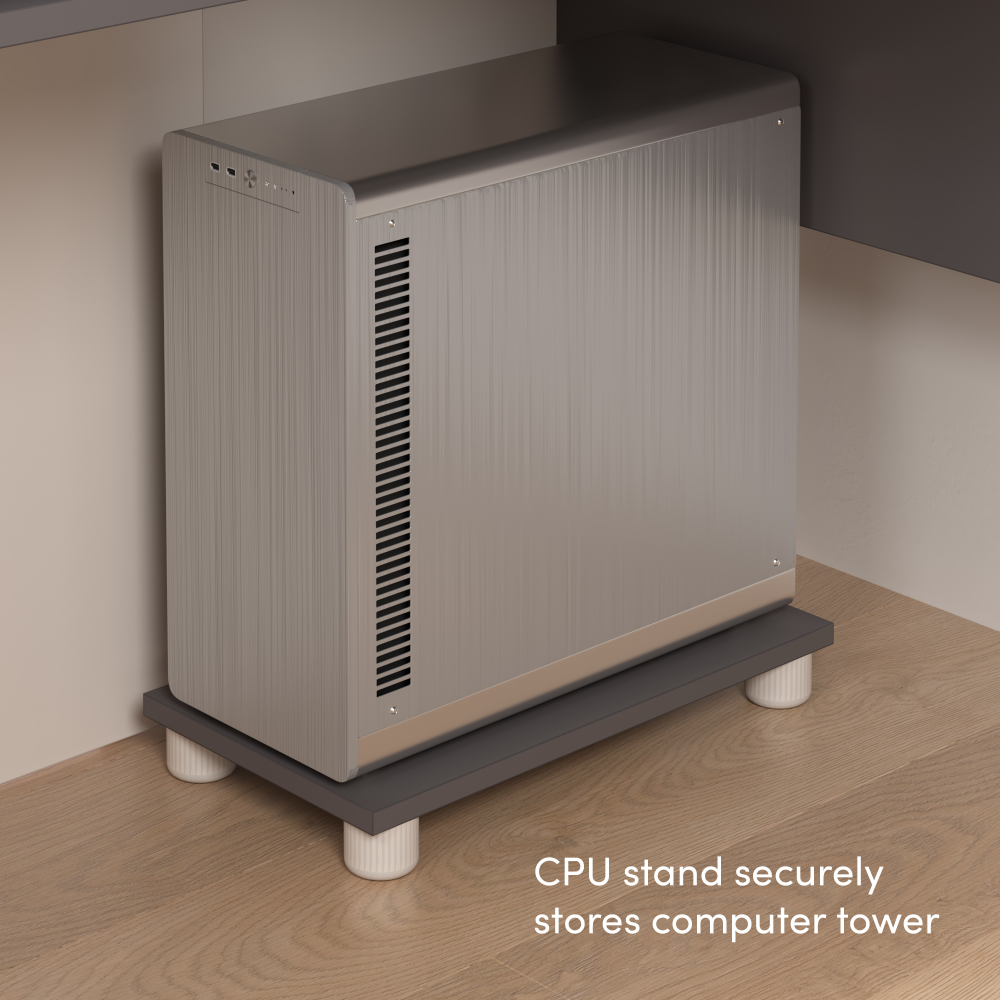 - Built-in CPU stand securely stores your computer tower beneath the desk, keeping it protected and accessible