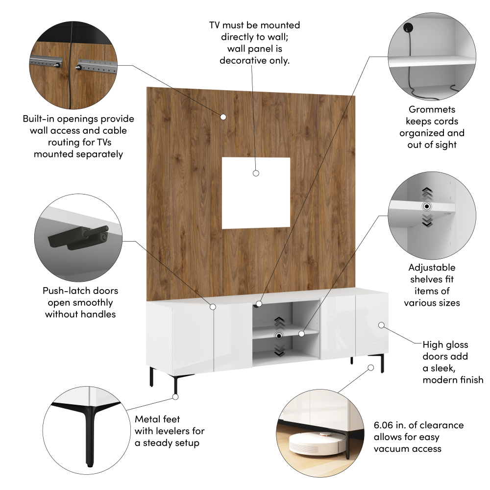 Barletta 71W Modular Entertainment Center with TV Stand and Small Wall Panel | 131900-184089