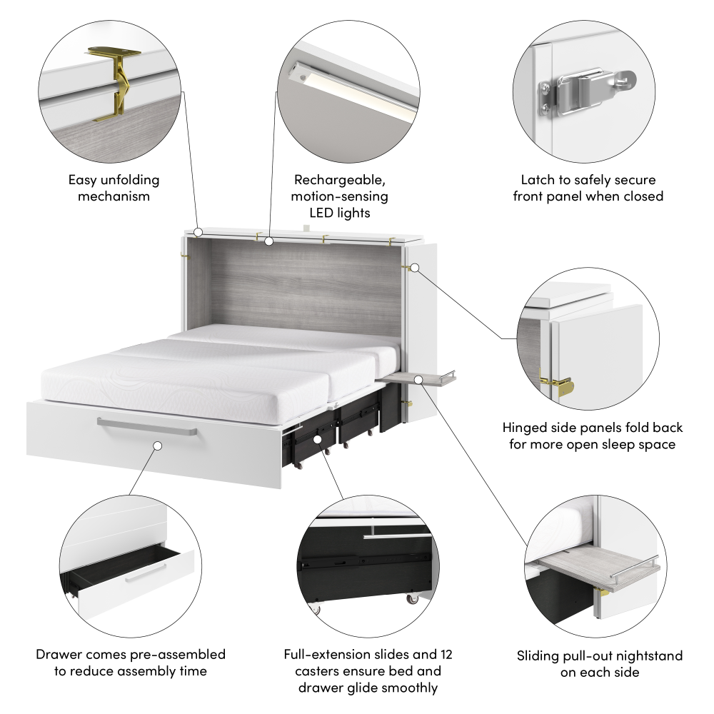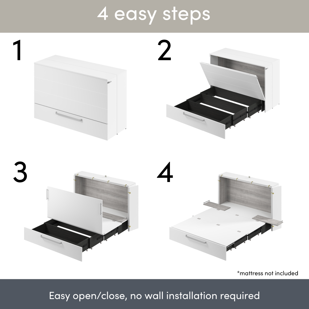 Bestar cabinet beds are available in Full and Queen sizes, giving you options to suit your space and sleeping needs: