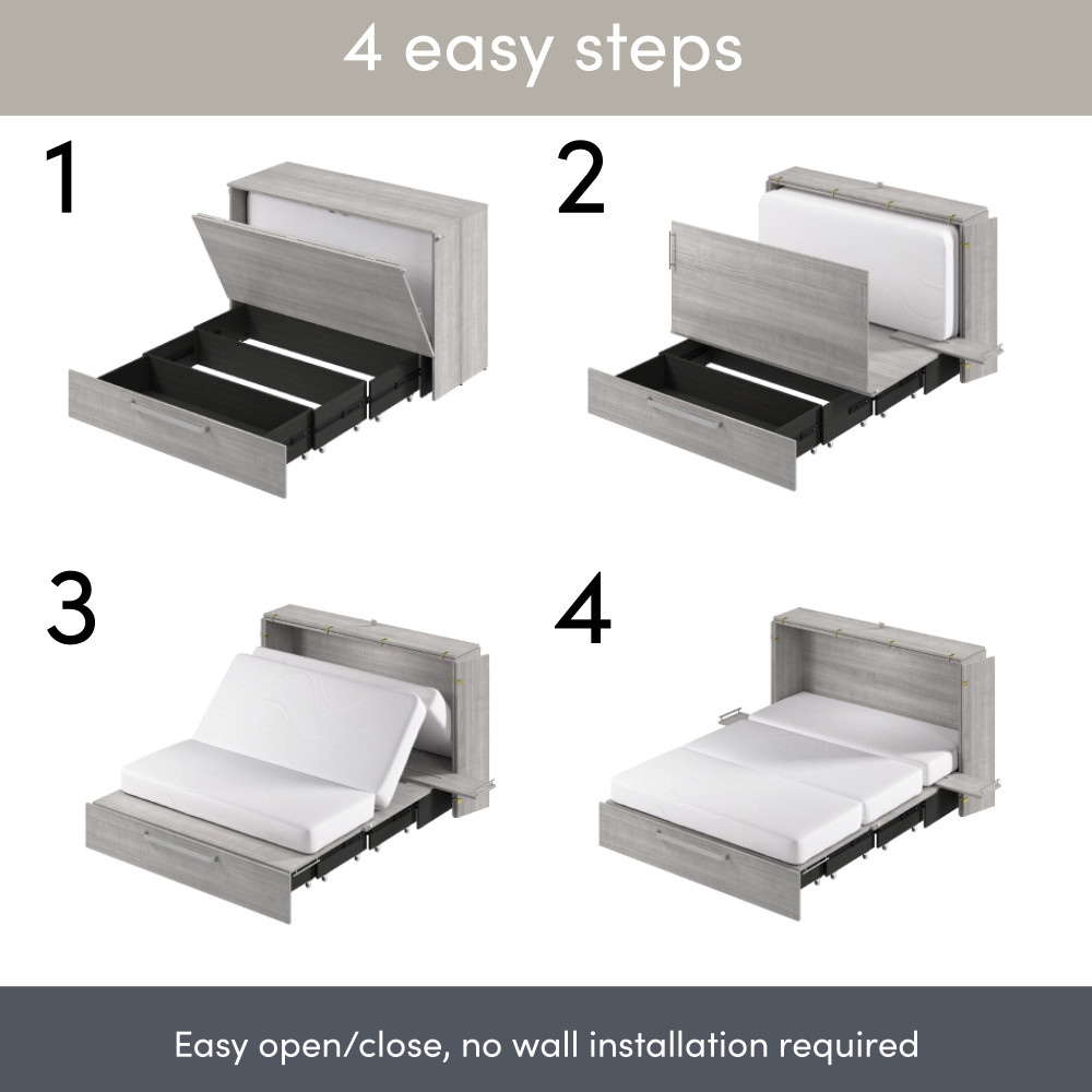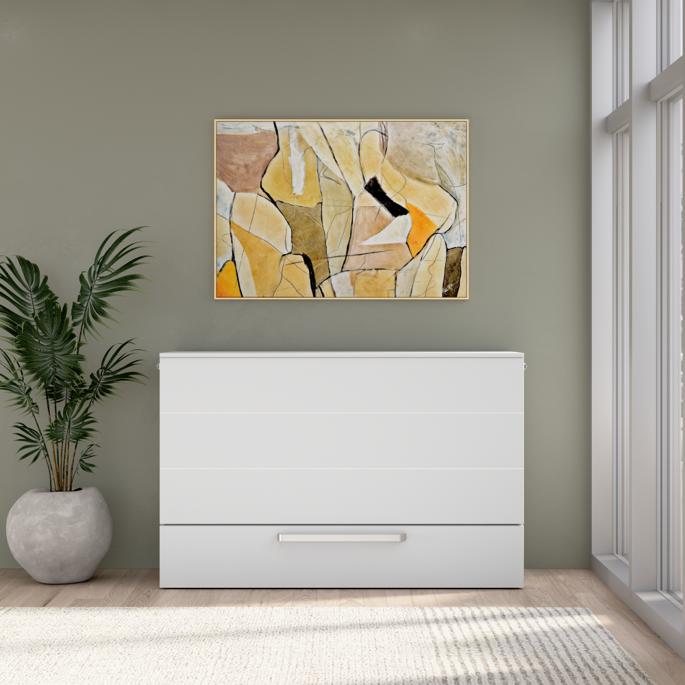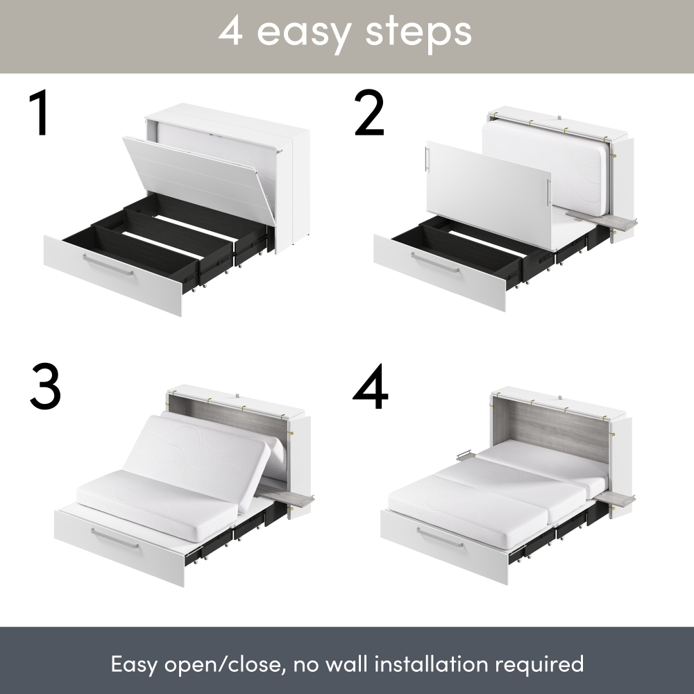 Both sizes feature the same space-saving design, stylish exterior, and included mattress. When closed, your cabinet bed takes up less room than a traditional bed, allowing you to reclaim valuable living space during the day.