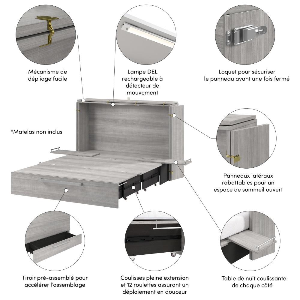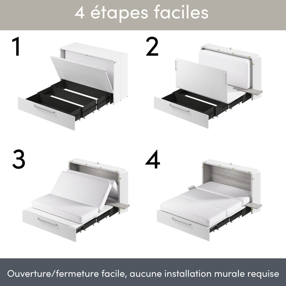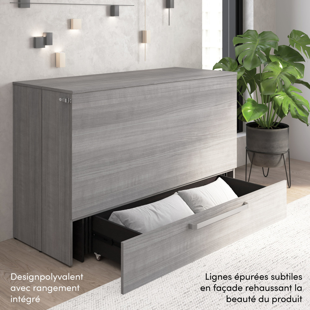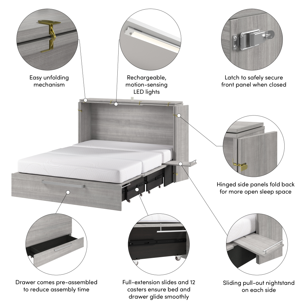Both sizes feature the same space-saving design, stylish exterior, and included mattress. When closed, your cabinet bed takes up less room than a traditional bed, allowing you to reclaim valuable living space during the day.